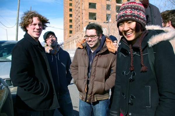 Knowing little to nothing about what we'd be doing, we finally arrived after getting miserably lost among the one-way streets of Detroit (my sense of direction rivals that of an insect's). We met the incredibly nice Jared Groth and his crew at a restaurant and accepted the meatloaf off of his plate that he kindly offered us. With everyone in good spirits, we caravanned over to our shooting location.