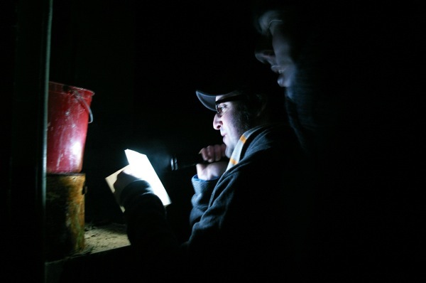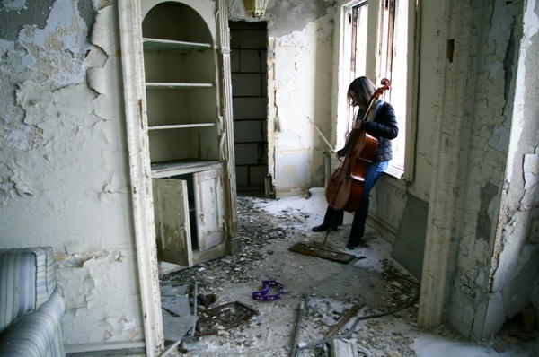 Apparently, we weren't technically supposed to be moseying around on someone's property due to trespassing issues...but, whatever! How to get me, Taryn, and the 10 person camera crew into the building? By lifting each other up, one by one (along with tripods, film equipment, instruments) as we climbed through a side window that brought us to the first floor. I was wearing a skirt...not fun.