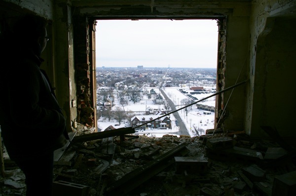 Our shooting location turned out to be an ancient, dilapidated building which I later learned was once called the Lee Plaza Apartments. Looking up at the building from the street, I saw that the windows and walls were all busted, and debris and dust were freely falling to the ground from the empty and open rooms. This building had been abandoned for decades because apparently it's cheaper to just pay the taxes and let it rot than to pay the money it costs to tear it down and build something new.