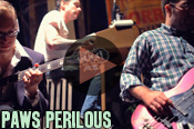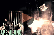 The band throws themselves into "Ape Along." Things are getting hotter. and crazier. And how could they not? The band climbs the coaster and jumps around - both because of the energy they're creating - and to attempt escape from the sparks and flames of the energy that's surrounding them. Nobody likes to tempt fire. Except the man without pants. Who, well... see for yourself. The just-in-case-water was a good idea. The kind of publicity that Single Barrel Detroit wants to get isn't linked to being responsible for burning Theatre Bizarre - one of Detroit's many hidden treasures - to the ground. Though Theatre Bizarre would undoubtedly rise like a Demon-Phoenix from the ashes, even stronger than before. You can't keep a good monster down.