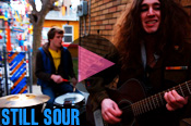 After finding a parking spot I track down the band members who are waiting in the back alley between Klinger and Sobieski. They are all huddled into a pickup truck blasting the heat trying to stay warm. A typical Michigan day, expect warm and sunny but get cold and cloudy. I introduce myself to George, the Marc Bolan of the Detroit scene, and try to correct myself from losing focus of the task. But a head of hair like George's demands your undivided attention at least for a few seconds, after which you can proceed as planned. As they start to set up equipment in the alley my eyes fix on two things, the drum set and George's second skin lamé lace pants. This is going to be good.